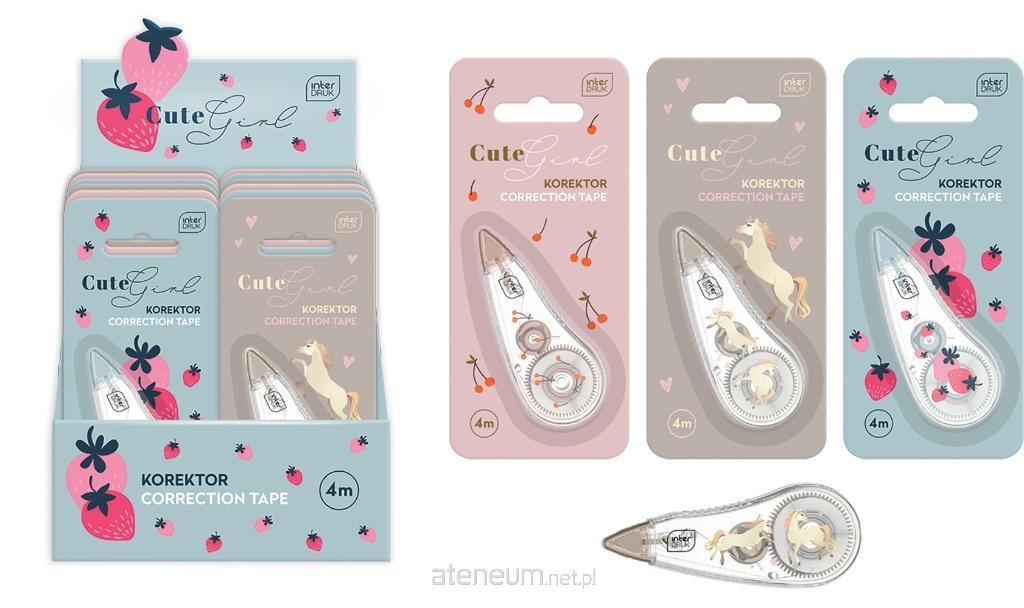 Superkryjący korektor w taśmie. Mały i poręczny - zmieści się w każdym piórniku. Długość taśmy: 4 m. Dostępny w 3 dziewczęcych wzorach. Przezroczysta obudowa pozwala na kontrolę zużycia taśmy. 12 szt. w displayu. Te same motywy znajdziesz również na naszych ołówkach, gumkach i akcesoriach papierniczych - stwórz swój niepowtarzalny zestaw!