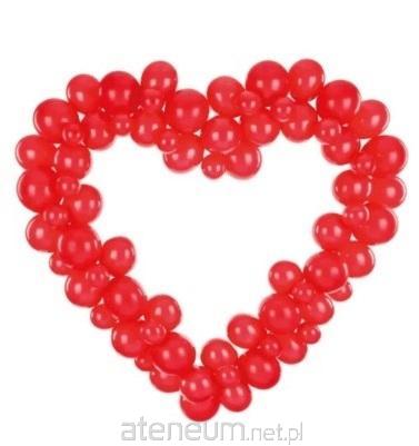 "Czerwona girlanda balonowa ze stelażem Serce, zestaw zawiera 68 balonów lateksowych w kolorze Pastel Poppy Red, 16 kartonowych elementów, 20 szt. naklejek dwustronnych, instrukcję. Wymiary po złożeniu ok 166 x 160 cm. "