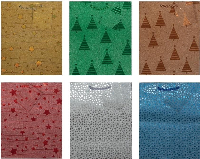 Torebka ozdobna LUX brokat Święta PL-6 średnia