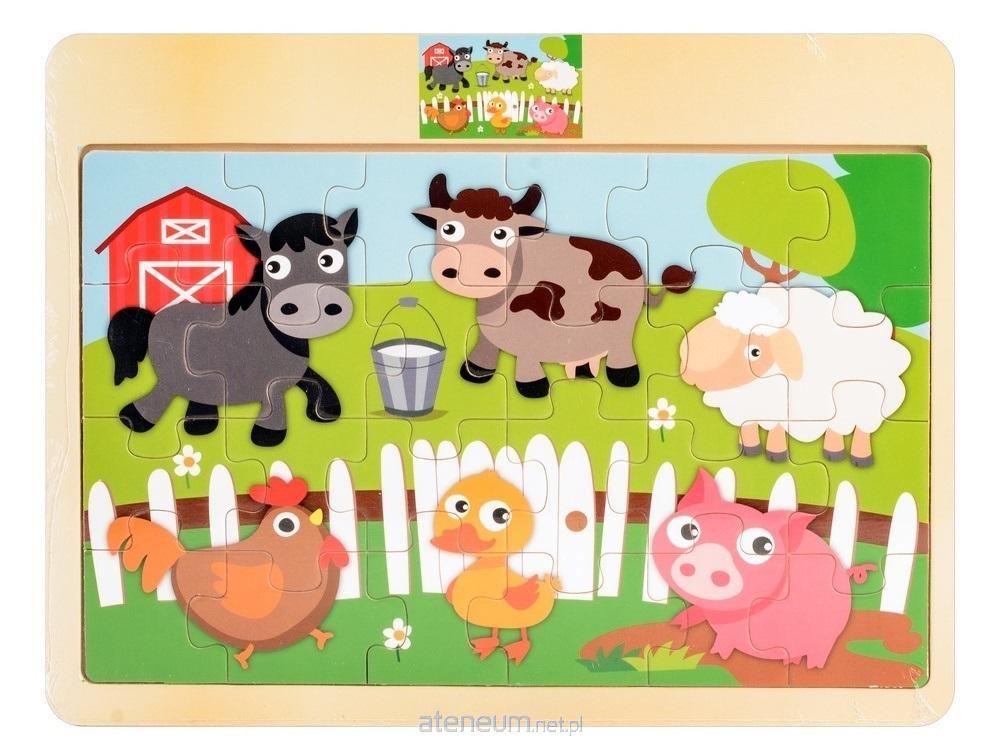 Układanka drewniana na dzieci, rozwija spostrzegawczość, wyobraźnię i koordynację wzrokowo-ruchową. Puzzle składają się z 24 elementów z poglądowym obrazkiem. Produkt przeznaczony dla dzieci powyżej 18 miesiąca życia, posiada certyfikat CE