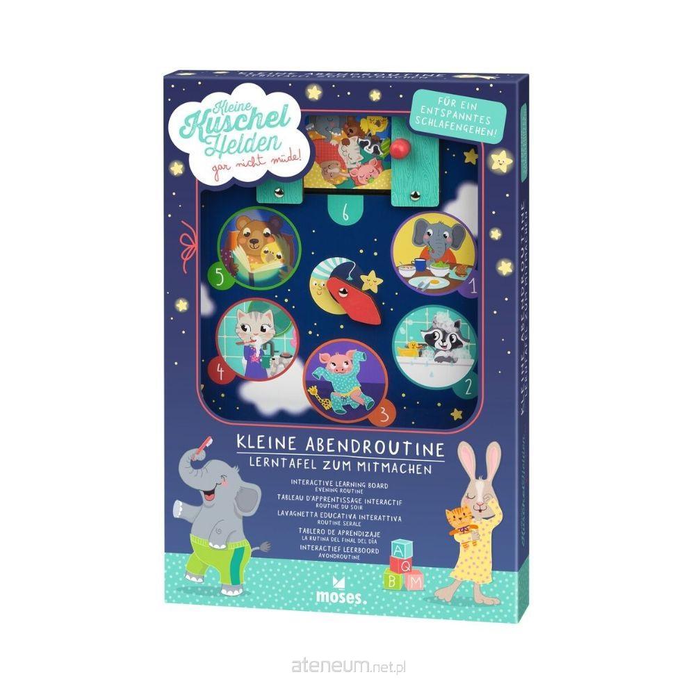 Drewniana Tablica Manipulacyjna, Czas na Sen Pięknie ilustrowana drewniana tablica manipulacyjna w interesujący sposób ułatwia małym dzieciom codzienną, wieczorną rutynę. Tablica jest idealnym pomocnikiem w domu i w przedszkolu! Sześć pięknie narysowanych stacji: kąpiel, zakładanie piżamy, mycie zębów i bajki na dobranoc, pomaga małym dzieciom w organizacji zajęć przed snem. Wyposażona jest w kolorowe wskazówki, składane i przesuwane elementy. Maluchom na każdym kroku towarzyszą bajkowi bohaterowie. Ułatwiają zapamiętanie koniecznych czynności. Dzięki praktycznemu sznurkowi tablicę edukacyjną można łatwo zawiesić w pokoju dziecięcym, na korytarzu lub w łazience. Tablica do nauki wieczornej rutyny dla dzieci. 6 pięknie ilustrowanych stacji: kolacja, kąpiel, zakładanie piżamy, mycie zębów, bajka na dobranoc, spanie. Z kolorowym wskaźnikiem i wieloma składanymi i przesuwanymi elementami. Posiada sznurek do zawieszenia. Materiał: drewno. Wymiary produktu: 29,5 cm x 20 cm x 1,5 cm. Wymiary opakowania: 30 cm x 20 cm x 3,5 cm. Produkty Moses są projektowane w Niemczech, ze szczególną dbałością o zrównoważony rozwój dziecka i wykonane z wysokiej jakości materiałów. Zabawki są wytwarzane zgodnie z filozofią "nauka przez zabawę", aktywnie wspierają i stymulują zarówno wyobraźnię jak i edukację dziecka.