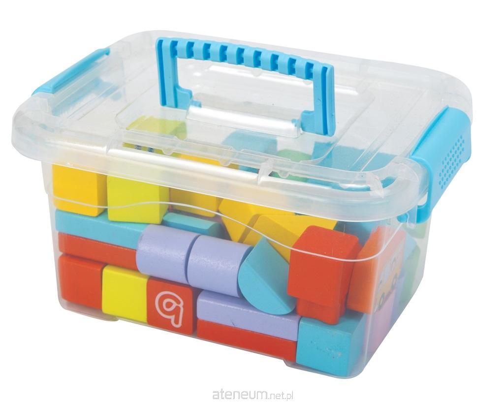 Zestaw 76 sztuk kolorowych klocków zapakowanych w plastikowy pojemnik z rączką. Dzięki różnorodnym kształtom z klocków można zbudować niezliczona ilość konstrukcji. Do zestawu dołączona została instrukcja z wzorami.