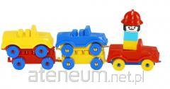 Zabawka przedstawia, wykonany z klocków model pociągu. W zestawie znajduje się lokomotywa oraz 1 wagon.