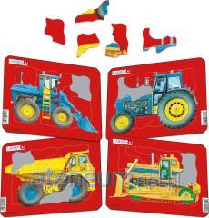 Układanka z grubej tektury ze specjalnymi kształtami. Elementy układanek mają kształty pasujące do tematu obrazka.
