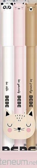 Zestaw 3 sztuk długopisów ścieralnych. Niebieski wkład. Zakończony gumką. Ściera nie pozostawiając śladów. Skuwka z uszkami zwierzaków z serii BB Friends. Idealny zestaw dla pierwszoklasisty i na prezent.