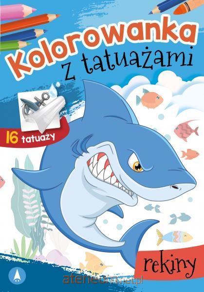 W środku: projekty do kolorowania i zestaw zmywalnych tatuaży (wzory kolorystyczne).