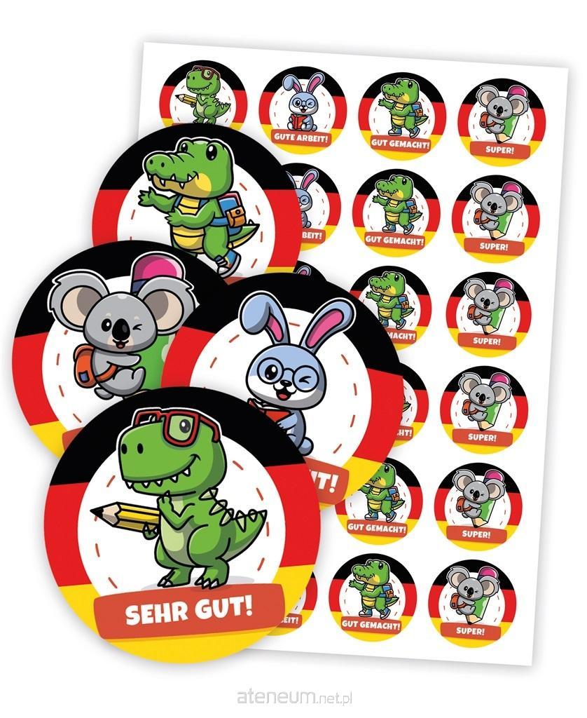 Zestaw 48 naklejek dla uczniów z Wesołymi zwierzętami oraz napisami po niemiecku, idealny jako nagroda dla ucznia!