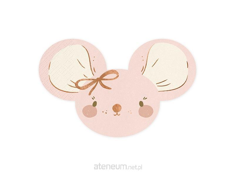 Serwetki papierowe Myszka w jasnoróżowym kolorze z nadrukiem w kolorze różowego złota, wymiary po rozłożeniu ok. 32 x 20 cm, wymiary po złożeniu ok. 16 x 10 cm.(1 op. / 20 szt.)