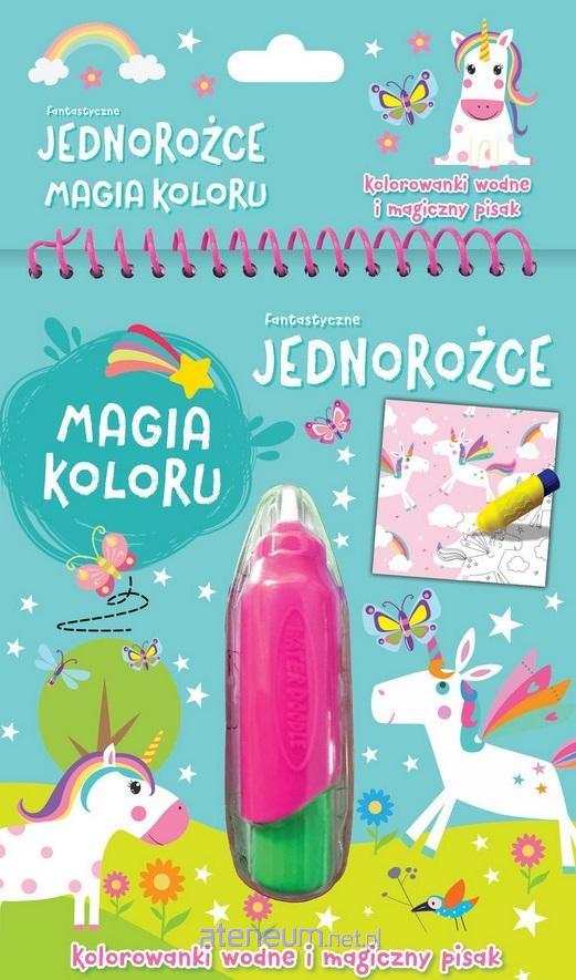 Śliczna kolorowa książka z magicznym pisakiem wodnym, dzięki któremu można wyczarować kolory na czarno-białych obrazkach.