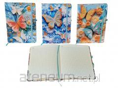 Gramatura: 100g, liczba stron 210, okładka: miękka, wymiary: 250 x 190mm, zaokrąglone rogi, wnętrze: : kolor papieru: off white, miejsce na datę, odstępy między liniami/kratkami 10mm, koperta w kolorze okładki na luźne karteczki, wstążka i gumka zamykająca w kolorze okładki, kolorowe krawędzie, perforowane kartki