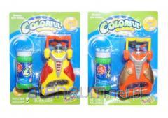 Kolorowa maszynka wraz z płynem do wytwarzania baniek mydlanych. Zabawka działa na baterie typu AA. Baterie nie są załączone do zabawki. Zabawka dla dzieci od 3 lat.