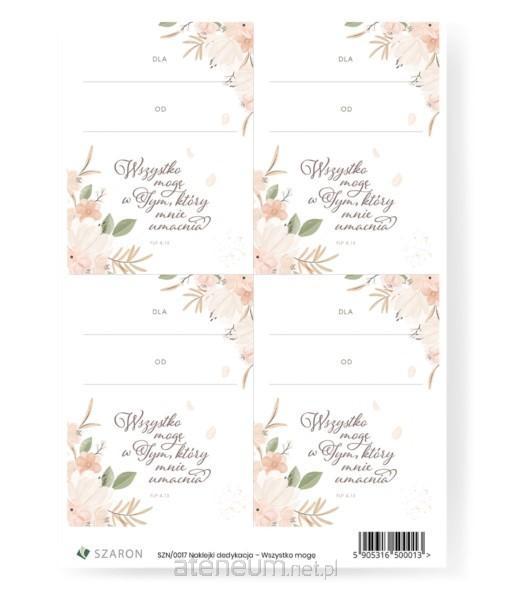 Cztery naklejki na arkuszu, można wkleić i wypisać dedykację w książce.
