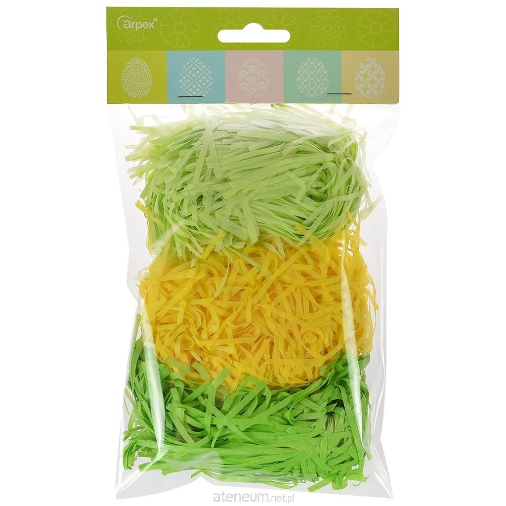 Papierowa trawa w trzech kolorach ubarwi niejedną świąteczną dekorację. Dostępna w 2 wersjach kolorystycznych: zielono-żółtej i niebiesko-żółto-różowej. Waga: 30 g.
