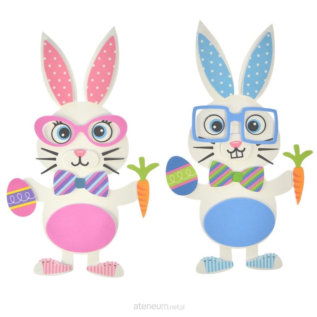 Skład zestawu: baza piankowa w kształcie zająca - 2 szt., piankowe elementy dekoracyjne do stworzenia zajączków.
