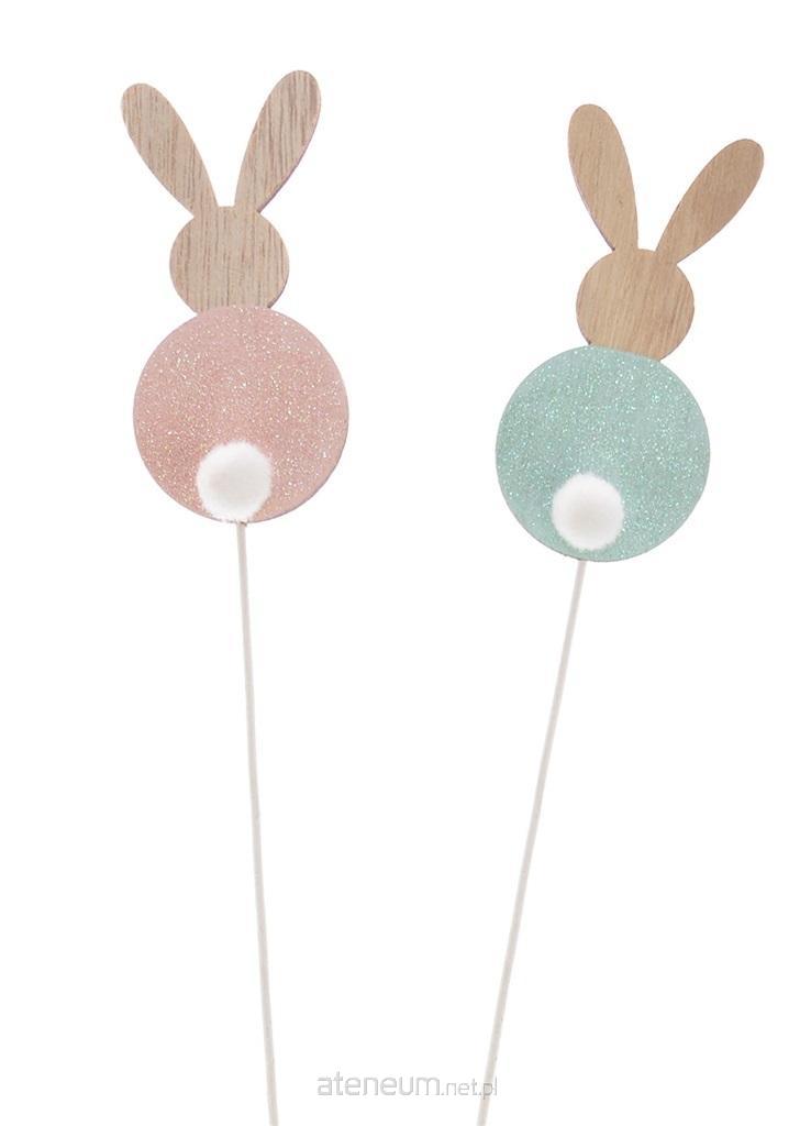 Drewniany zajączek na piku. 1 sztuka. Wysokość ok. 30cm.