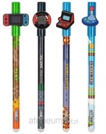 Wymazywalny długopis STRIGO ze skuwką z serii Gaming. Średnica końcówki piszącej 0,5 mm. W display'u 36 sztuk po 9 sztuk ze wzoru.