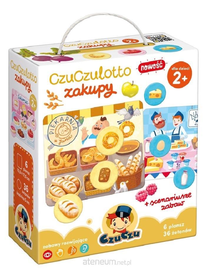 Edukacyjny zestaw zawiera 6 dużych kolorowych plansz i 36 żetonów, przedstawiających 6 różnych sklepów i smakołyki, które można w nich kupić. Do gry w loteryjkę chętnie zasiądą maluchy, starszaki i cała rodzina. CzuCzulotto sprawdzi się jako układanka, pierwsza gra dla maluchów i inspiracja do mnóstwa przeróżnych zabaw, na przykład w sklep i gotowanie. Mnóstwo pomysłów znajdziecie w poradniku, który dołączyliśmy do zestawu. Grajcie i bawcie się razem, doskonaląc przy tym przeróżne umiejętności.