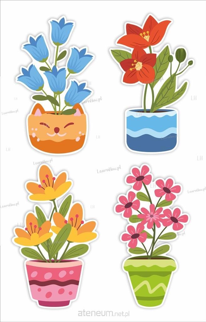 Zestaw składa się z 4 różne kwiatki w doniczce - idealne do wiosennej dekoracji szkoły i przedszkola.