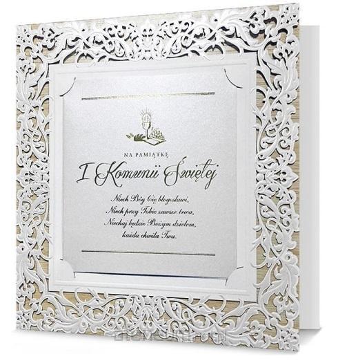 Karnet Swarovski kwadrat CL105 Komunia IHS Kielich