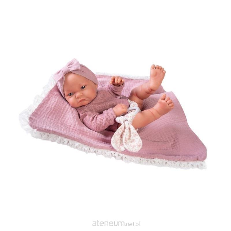 Nica 50278 w ślicznej różowej stylizacji uwielbia bawić się gryzakiem z uszkami. Ten noworodek to kolejny model uzupełniający kolekcję winylowych lalek do kąpieli. Proponowany model poszerzy bogaty asortyment serii Recien Nacida Antonio Juan. Bobas nie posiada włosów, a na jego główce można dostrzec rzeźbienia. Dodatkowo powierzchnię główki przyciemniono, aby wyglądała jak u noworodka. Laleczka ma 42 cm wysokości i waży około jednego kilograma i bardzo chętnie z każdym się pobawi. Ma ręcznie malowane niebieskie oczka wyglądające niczym jak u dziecka. Oczka dziewczynki są stale otwarte. Oprawę jej oczu podkreślą długie rzęsy oraz delikatnie narysowane włoski tworzące łuk brwiowy. Tak odwzorowana laleczka stanie się najlepszą przyjaciółką niejednego maluszka uwielbiającego zabawę w dom. Dodatkowo twarz bobasa podkreśla założona na główce opaska z kokardą doskonale pasująca do kocyka.