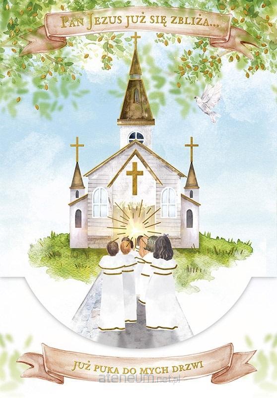 Zaproszenia komunijne Krzyż z gałązkami i kwiatami