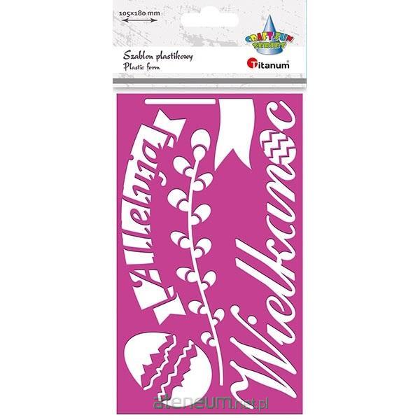 Szablon plastikowy 105 x180 mm: wstęga Alleluja, napis Wielkanoc, proporczyk, bazie, skorupki jajka.