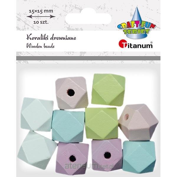 Koraliki drewniane kostki ze ściętymi rogami 15x15mm otwór 3mm kolory pastelowe 10szt.