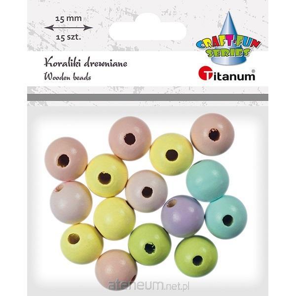 Koraliki drewniane okrągłe 15mm otwór 4mm kolory pastelowe 15szt.