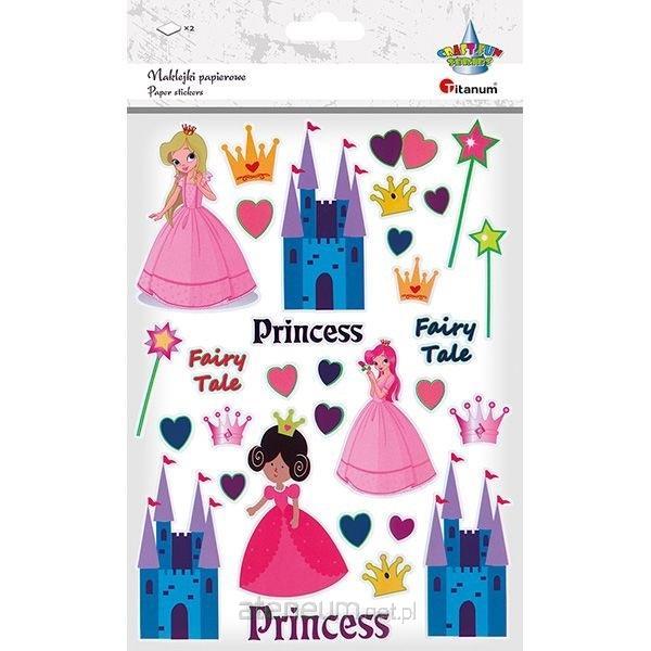 Naklejki papierowe - 2 plansze: księżniczki, zamki, korony, różdżki, mix rozmiarów i kolorów, 66 szt.