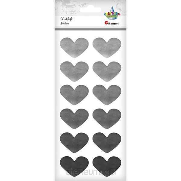Naklejki foliowe: serca lustro srebrne (także strona klejąca). 42 x 30 mm, 12 szt.
