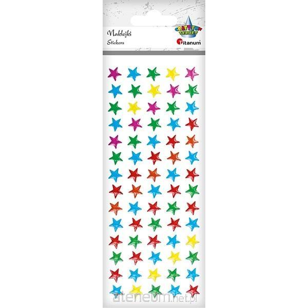 Naklejki foliowe: gwiazdki 10 x 10 mm - fuksjowe, błękitne, zielone, czerwone, żółte, 70 szt.
