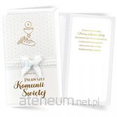 Każda kartka w kolekcji Passion Moments to małe arcydzieło - wyjątkowe i niepowtarzalne, piękne wizualnie. Kartki PM są bardzo bogato zdobione, a jednocześnie skromne i stylowe, cały efekt tkwi w detalach i doskonałym wykonaniu. W zależności od wzoru, na kartkach znajdują się dekoracje ze złotej, srebrnej, perłowej lub holograficznej folii, a także doklejki biżuteryjne, kokardki, brokat, laserowe wycięcia, wstążeczki i inne dodatki. Wnętrze karnetu to zawsze atrakcyjna grafika i tekst życzeń. Kartki mają w komplecie dopasowaną kopertę. Cechy szczególne: zdobienie: przynajmniej dwie folie (metaliczne/perłowe/holograficzne), brokat, elementy doklejane, wycięcia laserowe, wstążeczki - w zależności od wzoru, wnętrze: z delikatną grafiką, wyjątkowe życzenia w środku, w komplecie: dopasowana kolorystycznie koperta, okazja: komunia Wymiary karnetu po złożeniu: 11,4 x 21,5 cm.