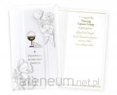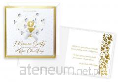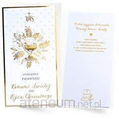 Kartki z serii Primus, to kartki najwyższej jakości, pięknie zdobione m.in złotą lub srebrną folią, tłoczeniami, czy wycinkami laserowymi. Idealne na najważniejsze okazje w życiu, takie jak ślub, komunia. W środku każdej kartki znajdują się dobrane do okazji życzenia, a do kartki dołączona jest dopasowana koperta. Cechy szczególne: wielkość: niestandardowa, prostokątna, kwadratowa, zdobienia: dekoracje ze złotej folii, doklejane koraliki, tłoczenia koperta: dopasowana w komplecie, wnętrze kartki: życzenia w środku, okazja: komunia