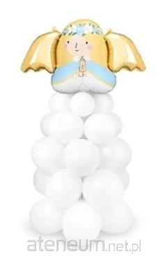 Bukiet balonów Anioł, zestaw zawiera 29 balonów lateksowych w kolorze białym, 4 balony modeliny w kolorze transparentnym, 1 balon foliowy Anioł oraz słomkę. Wymiary po złożeniu ok. 140 x 70 cm.