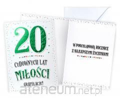 Kartka w powiększonym tzw. Angielskim formacie 140x190 mm. Wykonana z niezwykłą dbałością o szczegóły, zdobiona metalizowaną folią. W środku kartki znajduje się krótki tekst z życzeniami, a pod spodem jest miejsce na własną dedykację. w komplecie: dopasowana kolorystycznie koperta. okazja: Rocznica ślubu