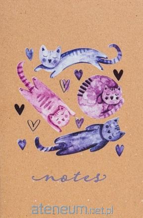 Okładki notesu z ilustracją kotów i serduszek oraz subtelnie tłoczone elementy grafiki i napisy, tworzą piękne zestawienie z naturalną tekturą. Kolor nici, pierwszej i ostatniej strony notesu uzupełniają stylowy wygląd notesu.