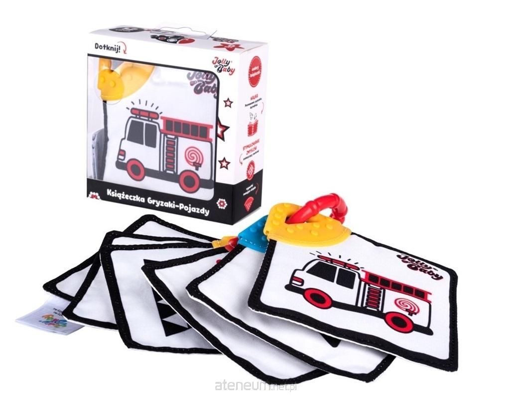 Książeczka, z którą poznawanie pojazdów będzie sensoryczną przygodą, stymulującą zmysły malucha! Materiałowe, dwustronne karty z obrazkami zdobią gryzaki, a umieszczone na nich wypustki delikatnie masują obolałe dziąsła dziecka, przynosząc ulgę w ząbkowaniu. Kontrastowe kolory książeczki pomagają utrzymać uwagę dziecka na obrazku i sprzyjają rozwijaniu wzroku malucha. Karty połączone są w całość za pomocą kółeczka, które można przyczepić w wybranym miejscu, aby książeczka mogła towarzyszyć maluchowi w poznawaniu świata.