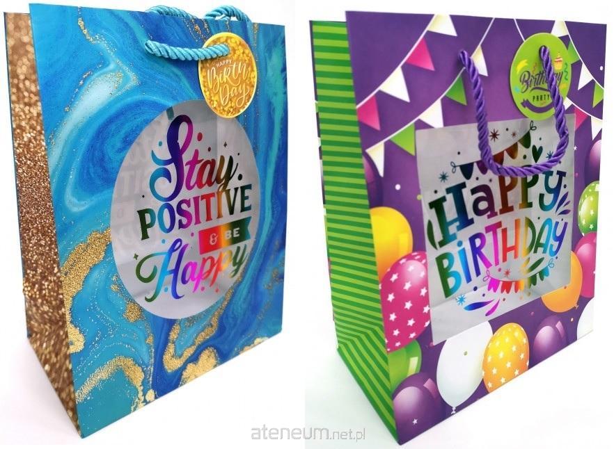 Torebka prezentowa urodzinowa L szerokie dno mix