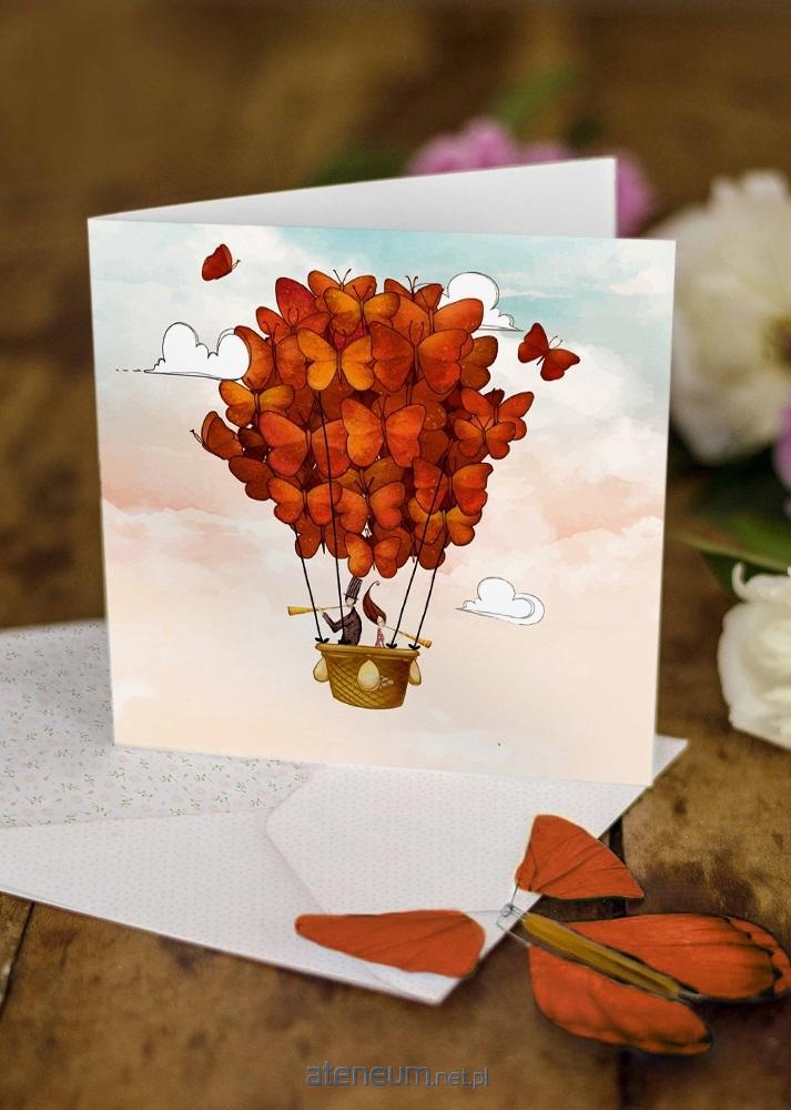 Karnet w formacie kwadratu (15x15cm) z niespodzianką. Po otwarciu karnetu wylatuje z niego papierowy motylek. Wspaniała niespodzianka dla osób poszukujących oryginalnego i efektownego prezentu. Do karnetu dołączona jest instrukcja obsługi. Wyprodukowany na Litwie.