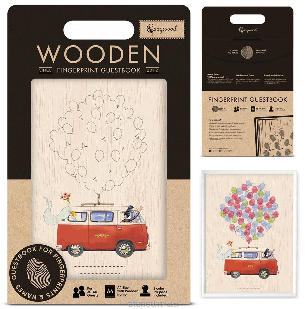 Księga gości weselnych w formie drewnianego obrazu oprawionego w białą ramkę, na który goście złożą swoje odciski palców, tworząc dzięki temu niezapomnianą pamiątkę dla Pary Młodej. Do zestawu dołączone są 2 tusze w kolorach czerwonym i niebieskim. Tusz w łatwy sposób można zmyć z palców. Rekomendowana jest dla 30-40 gości weselnych. Instrukcja obsługi: 1. Rozpakuj obrazek oraz tusze, 2. Dotknij wybrany tusz swoim palcem, 3. Umieść odcisk palca na drewnianym obrazie, 4. Przy swoim odcisku możesz złożyć swój podpis, 5. Zachęć pozostałych gości do zabawy, 6. Państwo Młodzi będą mieli niezapomnianą pamiątkę na ścianie w swoim domu.