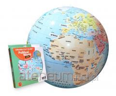 "Olbrzymia i dekoracyjna kula ziemska dla pasjonatów i ciekawych świata. Starannie przemyślana grafika, najwyższej jakości nadruki, piękna kolorystyka, precyzyjna geografia i kartografia polityczna z flagami poszczególnych krajów czynią z tego produktu wyjątkowy produkt. Lekki jak powietrze globus pozwala na zabawę samemu lub w grupie. Można go też wyeksponować, zawieszając na przezroczystym haczyku lub umieszczając na nadmuchiwanej podstawie. Każdy kontynent ma swój własny kolor, ikony symbolizujące inną scenerię, a kompas pozwala z łatwością znaleźć kierunek. Piłka globus jest do nadmuchania, opakowanie nie zawiera pompki. "