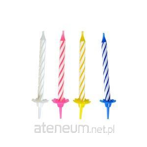 Kolorowe świeczki urodzinowe z podstawkami do dekoracji tortu. Wysokość 6 cm.