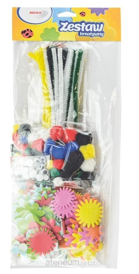 Zestaw kreatywny duży zawartość: pompony - 39 szt naklejki z pianki - 36 szt ruchome oczy - 20 szt druciki kreatywne - 20 szt