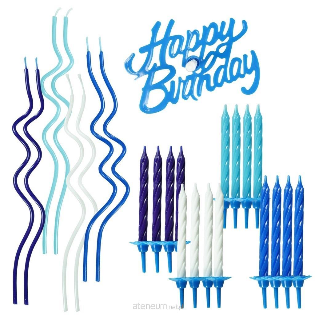 Dekoracyjny zestaw świeczek w kolorystyce różowej na tort. W skład zestawu wchodzą 4 długie świeczki spiralne, 5 klasycznych świeczek krótkich oraz napis "Happy Birthday". Oryginalna dekoracja tortu urodzinowego.