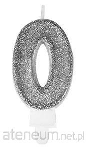 Świeczka cyferka brokatowa na podstawce. Wysokość świeczki 7,5 cm.
