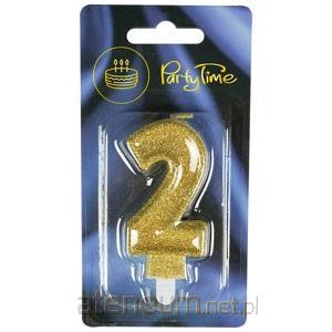 Świeczka cyferka brokatowa na podstawce. Wysokość świeczki 7,5 cm.