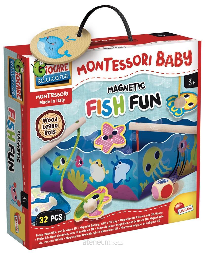 Rzuć wyzwanie znajomym i dowiedz się, kto jest najlepszym rybakiem! Niezwykła gra edukacyjna w duchu metody edukacyjnej opracowanej przez włoską pedagożkę, Marię Montessori. Opakowanie zawiera magnetyczne rybki, kości i drewniane wędki, trójwymiarowe akwarium.