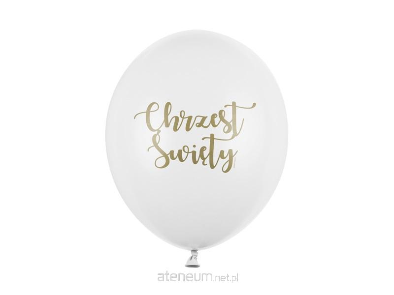 Balony Strong Chrzest Święty z nadrukami, zestaw zawiera 6 balonów (6 pastelowych w kolorze Pure White ze złotym nadrukiem), średnica ok. 30 cm.(1 op. / 6 szt.)