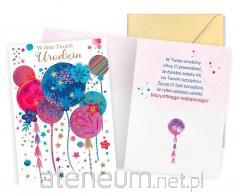 Kartka z serii Quadro to idealny pomysł na piękną pamiątkę. Każda kartka QRP zdobiona jest złotą folią oraz wyróżnia się przepięknym kwiatowym motywem na froncie. Środek kartki posiada specjalnie dopasowane życzenia z miejscem na własną dedykację. Całość idealnie dopełnia dopasowana kolorystycznie koperta Cechy szczególne: wielkość: 15.5 x 15.5 cm po złożeniu koperta: dopasowana koperta kraft zdobienia: złota folia okazja: urodziny