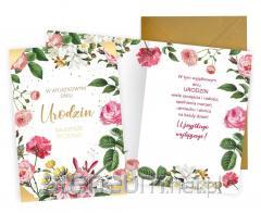 Kartka z serii Quadro to idealny pomysł na piękną pamiątkę. Każda kartka QRP zdobiona jest złotą folią oraz wyróżnia się przepięknym kwiatowym motywem na froncie. Środek kartki posiada specjalnie dopasowane życzenia z miejscem na własną dedykację. Całość idealnie dopełnia dopasowana kolorystycznie koperta Cechy szczególne: wielkość: 15.5 x 15.5 cm po złożeniu koperta: dopasowana koperta kraft zdobienia: złota folia okazja: urodziny